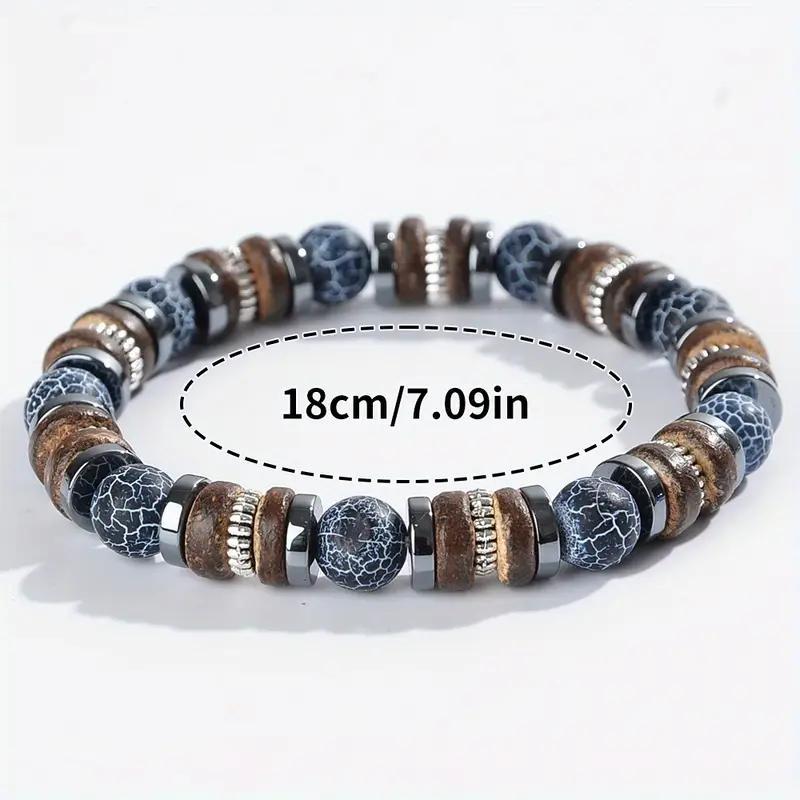 Handmade beaded style fossil bracelet men's retro style pine stone wood beads coconut shell bracelet
