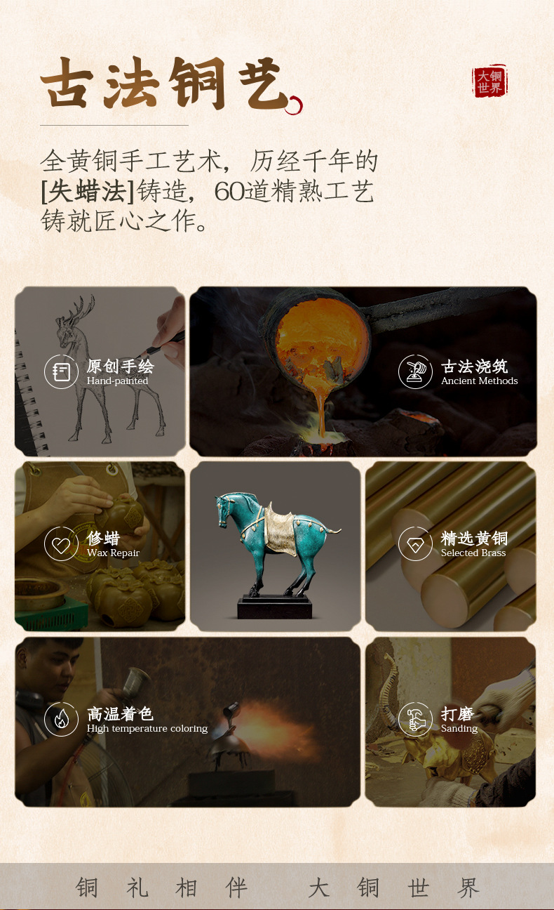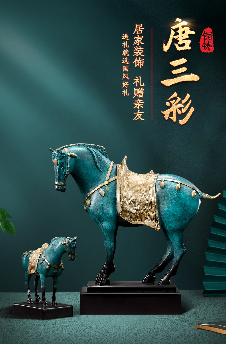 Brass horse ornaments bronze Tang three-color horse zodiac craft gifts office home porch ornaments opening gifts